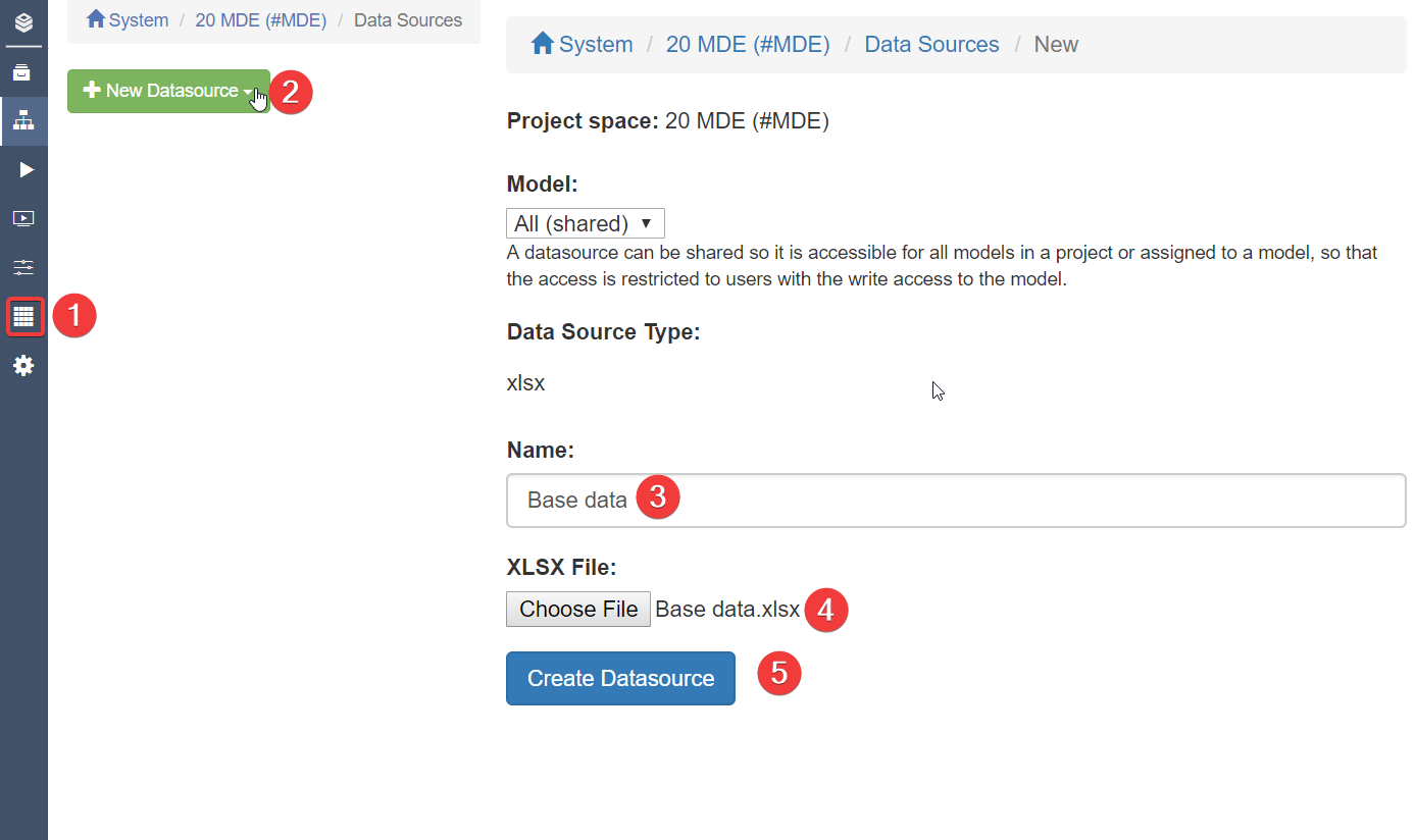 We follow it by uploading the Base data.xlsx. Please remember to name the Datasource 'Base Data' as shown below.