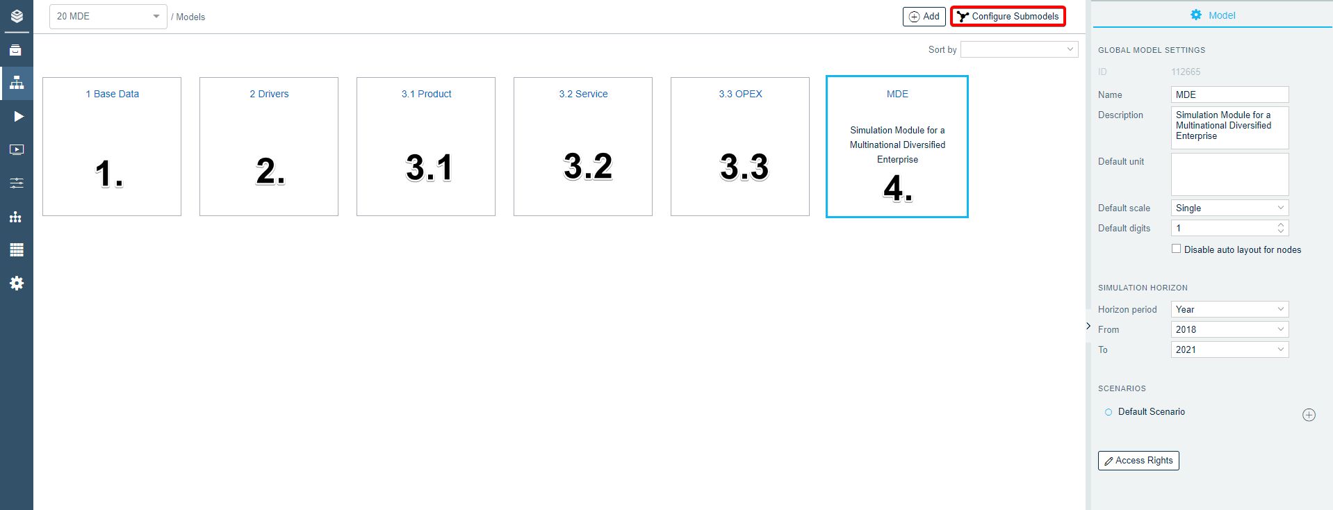 Congratulation on creating your first sub-model structure. Now go ahead and move to 2. MDE Submodels and fill it with data.