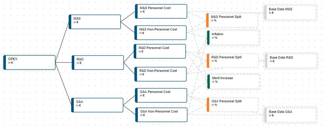 | 1. | M&S Personnel Cost | Switch the sign of \'Base Data\'.\'Base Data M&S\', use \'Drivers\'.\'M&S Personnel Split\' to calculate the personnel part of costs. Roll it forward afterwards with \'Drivers\'.\'Merit Increase\' as a driver. |