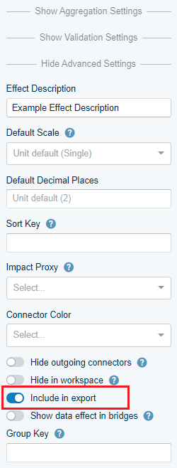 Advanced Node settings allow to further fine-tune the behaviour of a Node. You can hide technical Nodes by default or mark Nodes as base Assumptions.