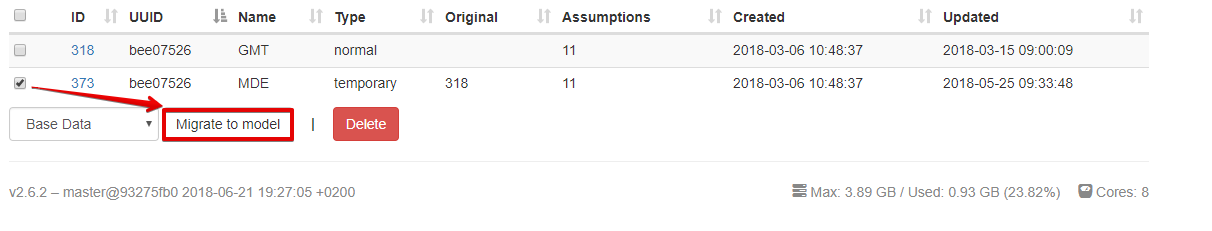 Migration tries to match node names, baselines, dimensions etc. to the new model - it works best, when the models are similar. Especially baselines names and dimensions should be the same! If the migration stops with an error message that is unclear - get in contact with us via the chat button. We are still working on making all migration-scenarios work!