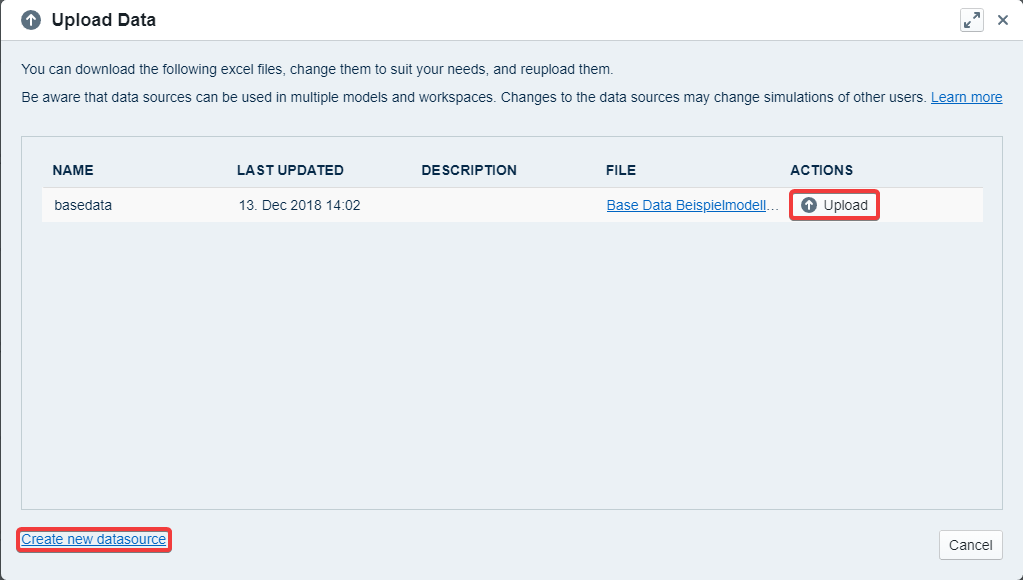 If you want to modify an existing data source you can click the 'Upload' button on the right and skip to step 2.