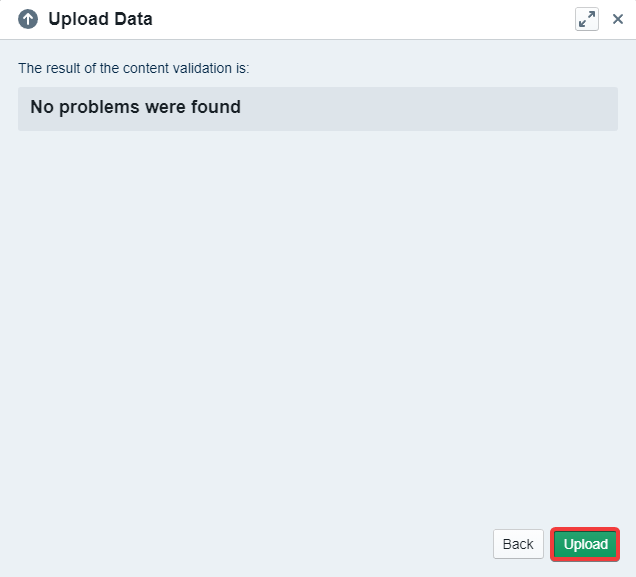 Now the data is getting validated. If everything worked correctly, the data upload wizard will display ‘No problems found’. In this case, you can 'Upload' your new data source.