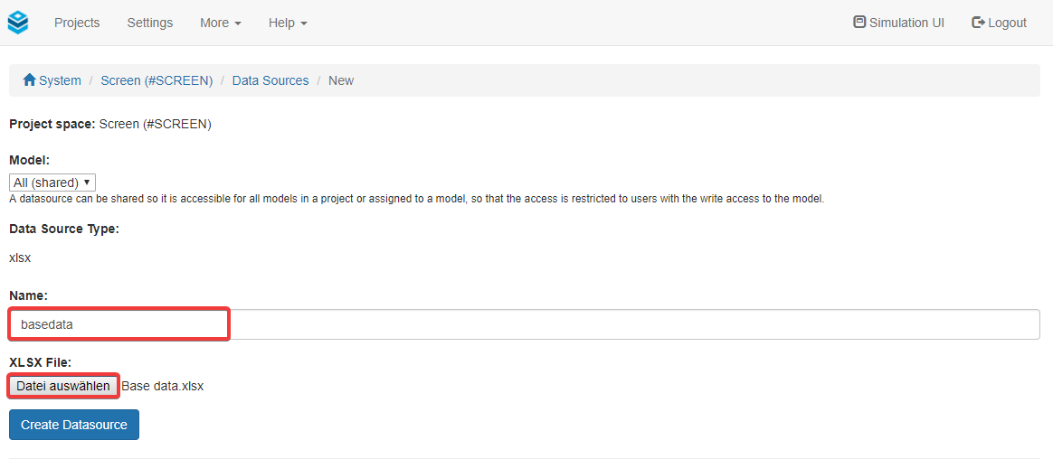 On the following page, you can name the data source (please note the Naming Guidelines) and select an Excel file to upload. The file will only be a placeholder since we will upload a new one later. Once this is finished you can click 'Create Data Source'.