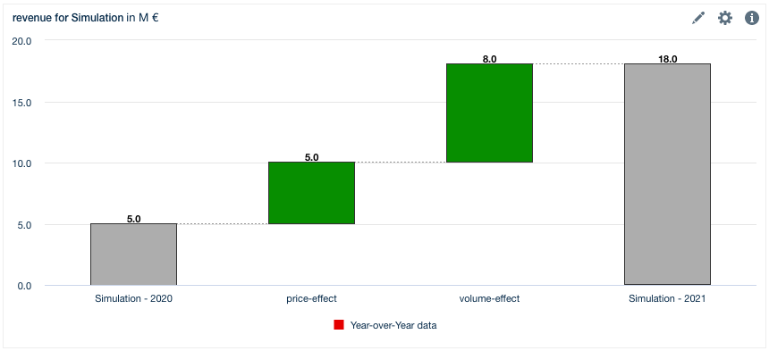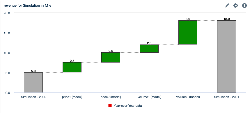 Choose one scenario and two years/quarters/months and select "Bridge between periods (e.g. YoY)".