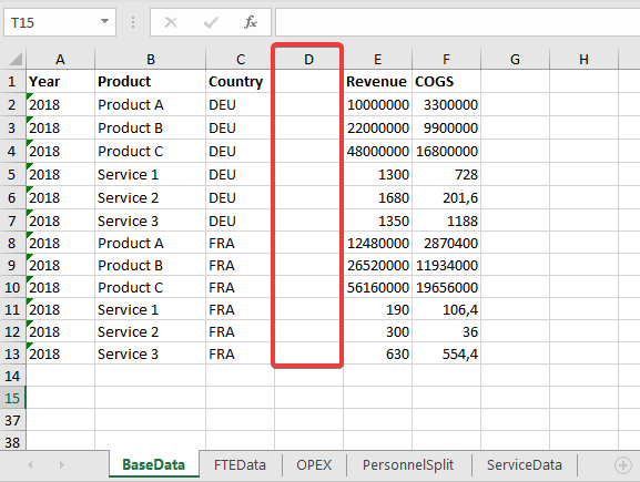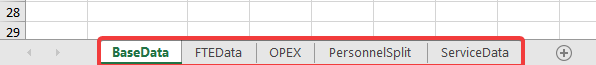 Our current document 'Base data.xlsx' contains the following worksheets: