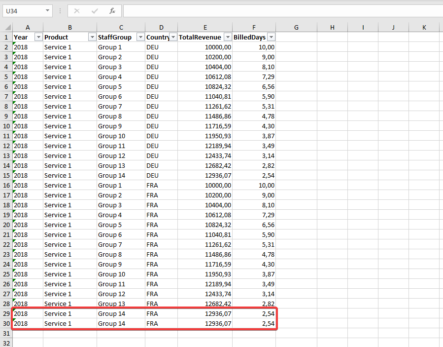 Our Excel file contains the last row twice.