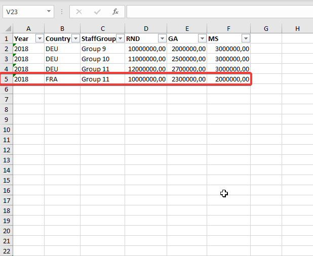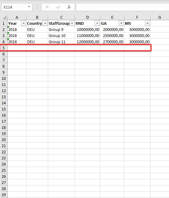 We now deleted the previously added row 5 from our Excel file.