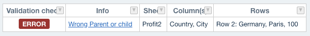 This error appears when the hierarchy of a level (Paris) and its parent (Germany) is not the same as specified in the dimension management. In this example, the parent of Paris is France and not Germany.