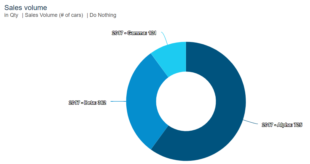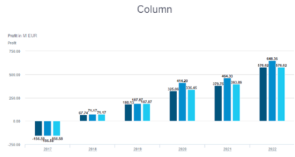 Column Chart | Displays data using vertical bars. Multiple data series can be displayed next to each other. | Column charts can be used to compare different key figures in the same dimensionality. For example, you can use it to compare the profit across different scenarios and years. | ![]() |
