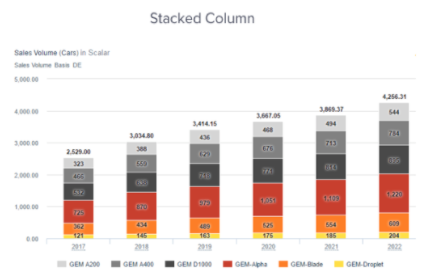 Stacked Column/Bar Chart | Displays its data by stacking the elements on top/next to each other if multiple data series are displayed. | Stacked charts are mostly used when multiple data series for the same value are displayed. | ![]() |