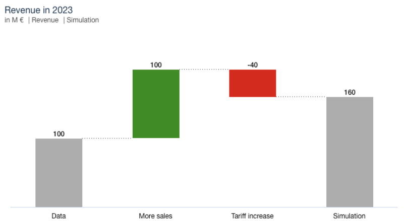 Scenario Bridge | Displays the effect of all Assumptions on a key figure. | With scenario bridges, you can show the effect of the whole assumptions or the effect of each line-Item inside the assumptions. | ![]() |