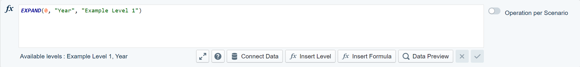 The result is a cross product of all rows of the node with all values of the level entered in the formula.