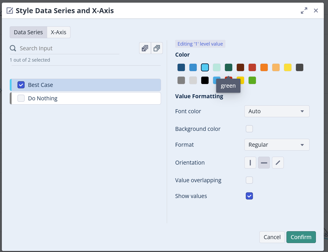 When selecting multiple data series, any changes will be applied to all selected series simultaneously.