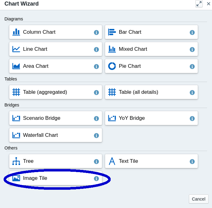 Once you choose the image tile option, the chart wizard will automatically close and a new tile will appear in the current sheet.