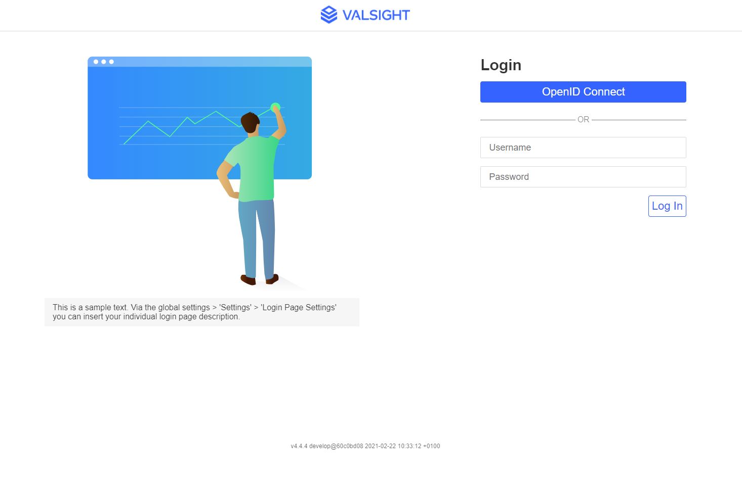 If external authentication providers using SAML or Open ID Connect are used, the button text can be customized.