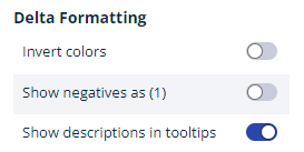 For the chart to show dimension levels as deltas the setting ‘Enable levels as deltas’ has to be enabled.