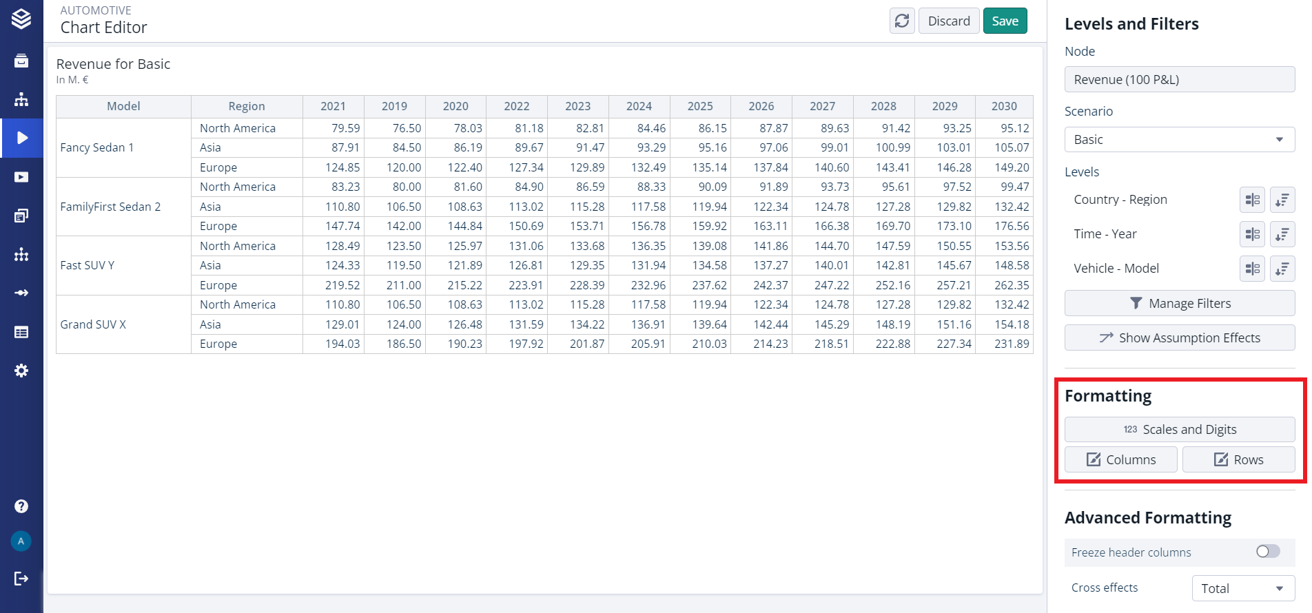 In charts you can also set the format for each level value to highlight it in your chart or for example to show the calculation of sums more clearly.