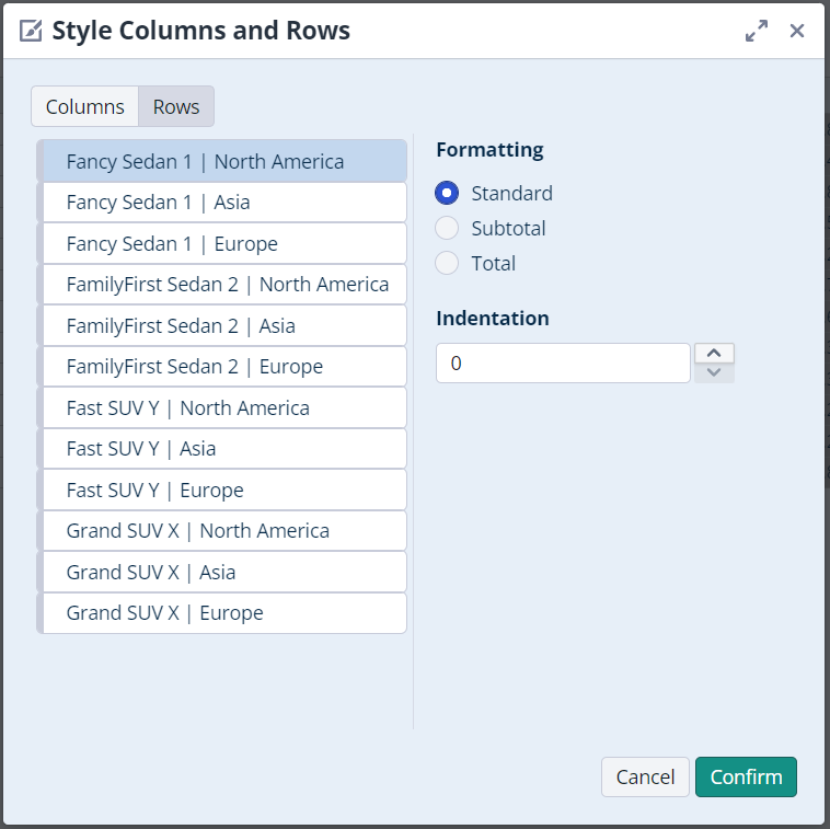 Formatting your Rows/X-Axis