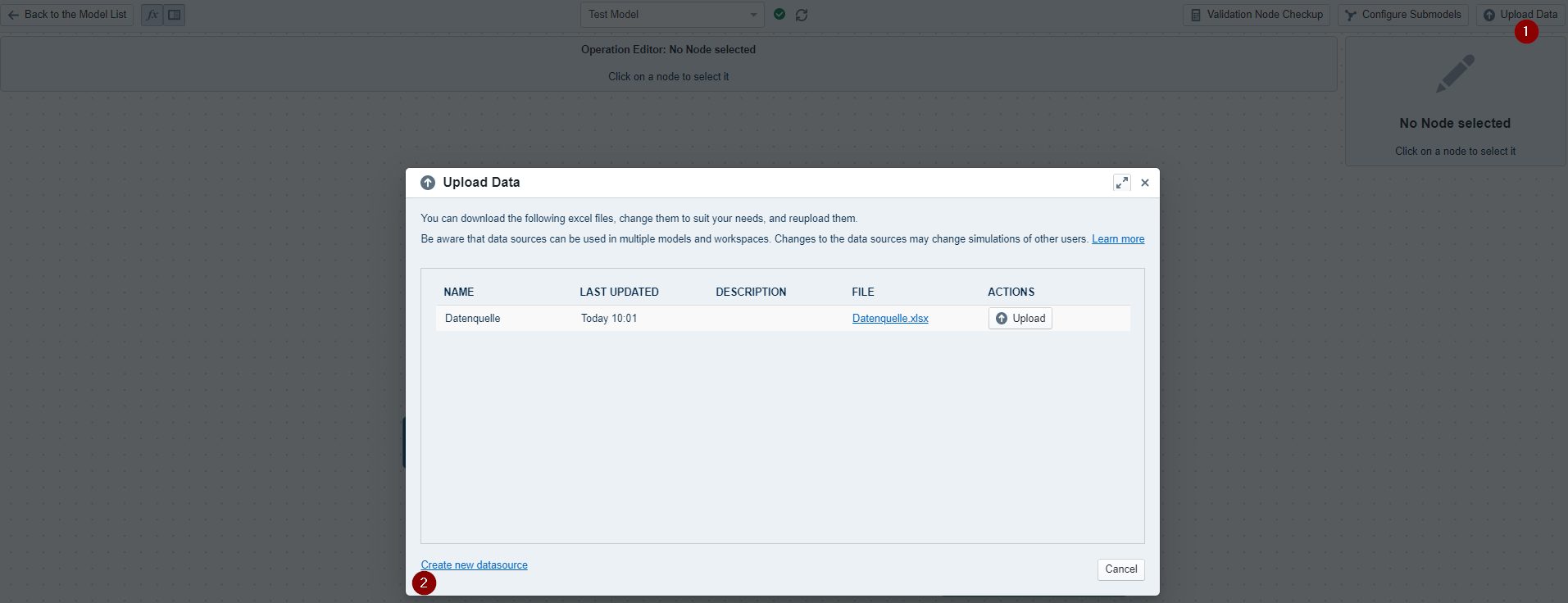 Now, to use the data in the model, we navigate back to the model that was set up before.