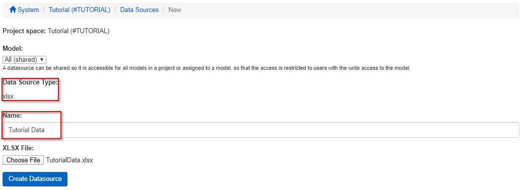 We will now assign a name to our new datasource, for example, "TutorialData" and then simply upload it.