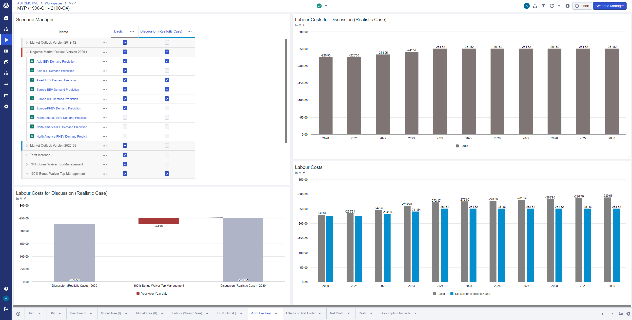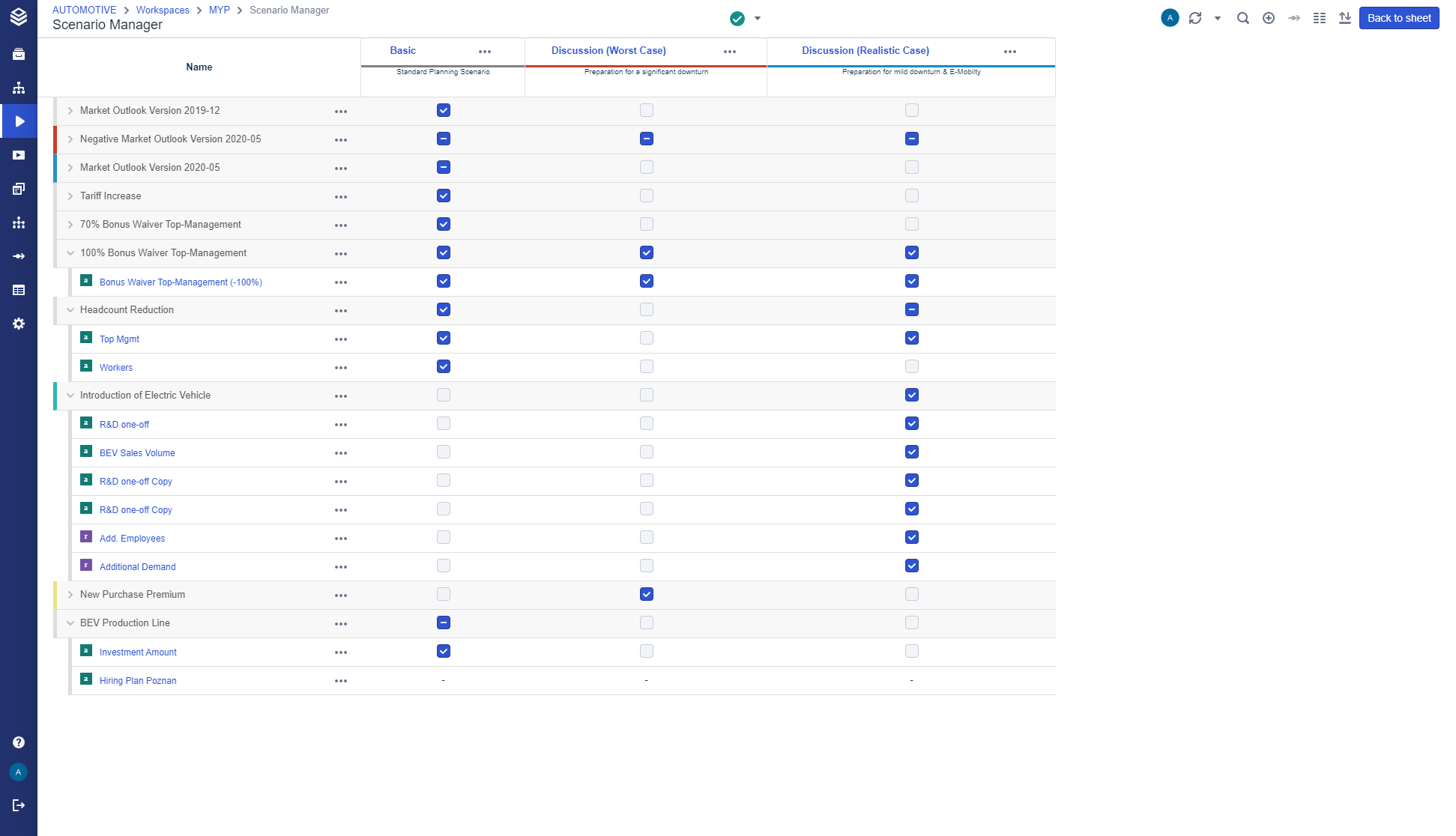 Scenario Manager: Contains an overview of all assumptions, line-items, and scenarios that change your base data