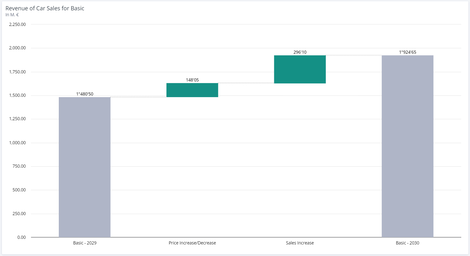 The calculation logic determines the individual effects for all assumptions that are active in the selected scenario between the two viewed periods.