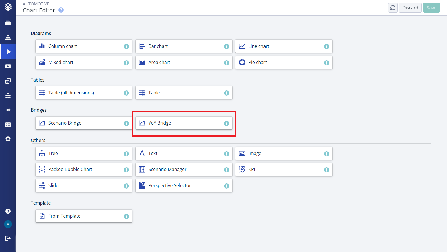 Period Selection: Per default, the Time bridge is always created on the last two years of your horizon. You can use the filter on “Time” in the chart editor to select other periods the Time bridge should show. Selecting e.g. 2017 and 2020 will result in a bridge with the summed-up effects of the three years. In case only a single period is selected, the bridge will automatically use the previous period as a reference point for the Time bridge.