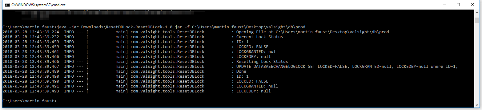 Resetting the Database CHANGELOGLOCK