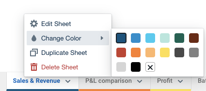 Change the colors of your sheets to spice up your presentation or group sheets together.