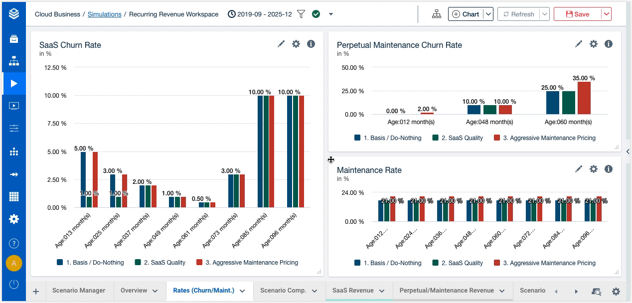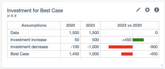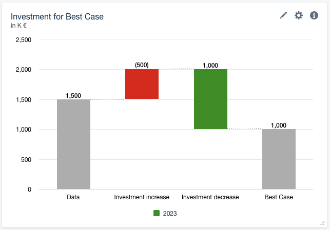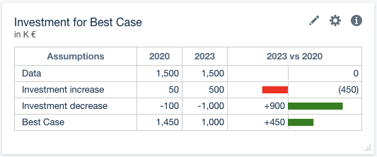 You can now invert the color of red and green bars in bridges or tables. The numbers will also be inverted. Additionally, you can format negative numbers with parentheses (e.g. (450)) as we did in this example. You can find the setting in the sidebar > Settings & Filters > Node > Format.