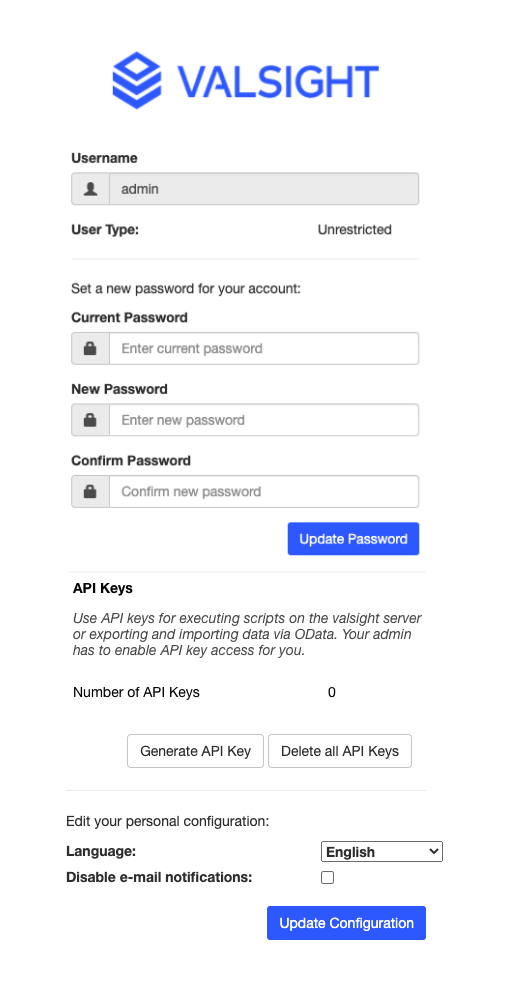 With this update, Valsight allows all users to generate and use API keys.