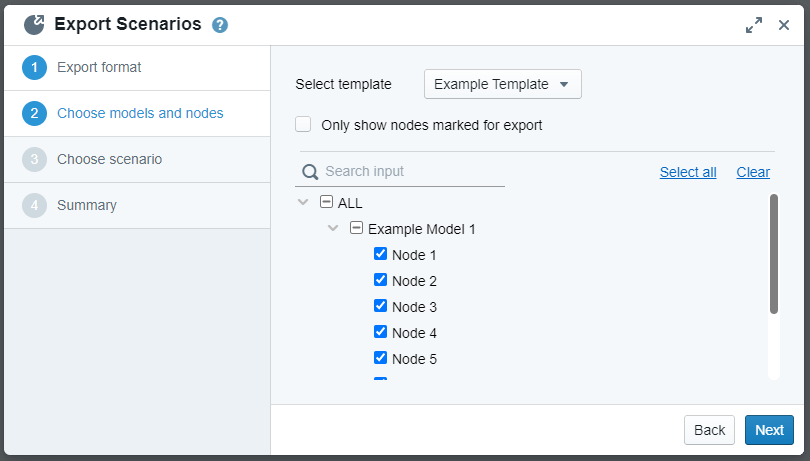 These Templates allow a more flexible node selection when exporting scenarios, but also provide a standardized frame for recurring exports.