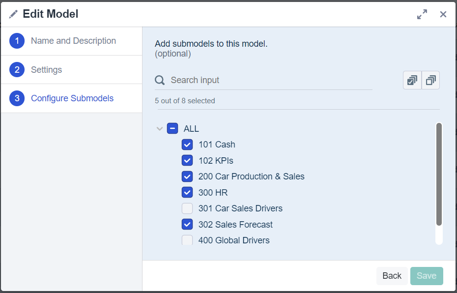 The submodel configuration for models is no longer opened via a separate button but is now also inherited in that new dialog and can be reached by opening the settings of a model.
