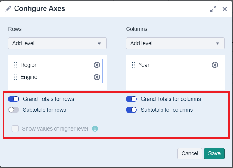 Users can now set subtotals and grand totals separately for each chart.