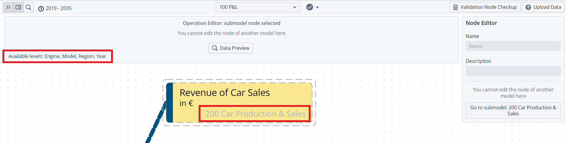 With the new release, more information about submodel nodes is provided in the model editor.