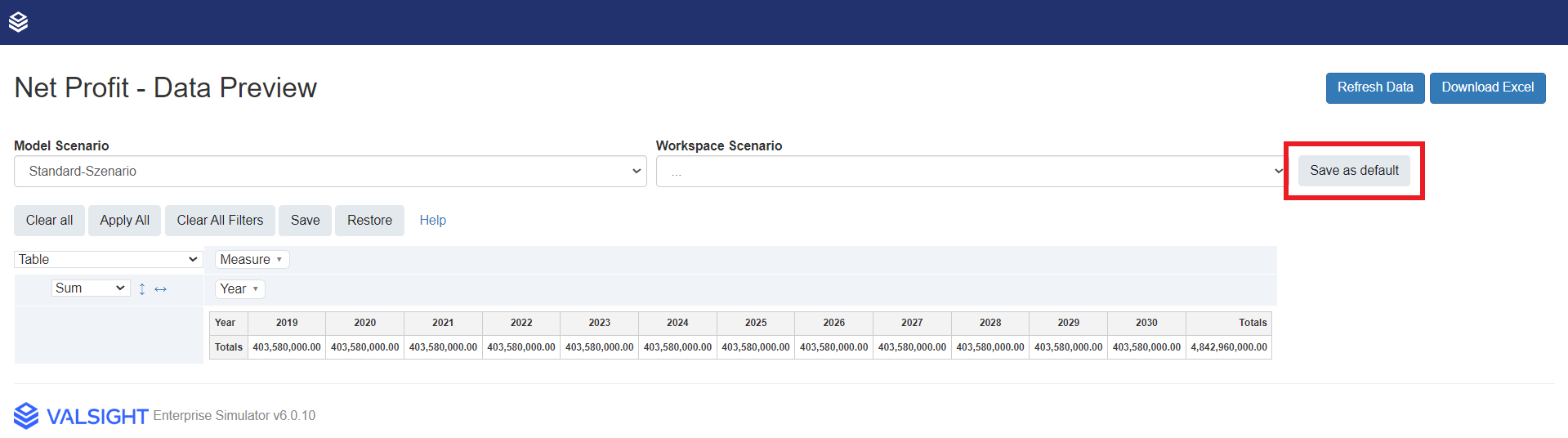 Scenario Default for Data Preview